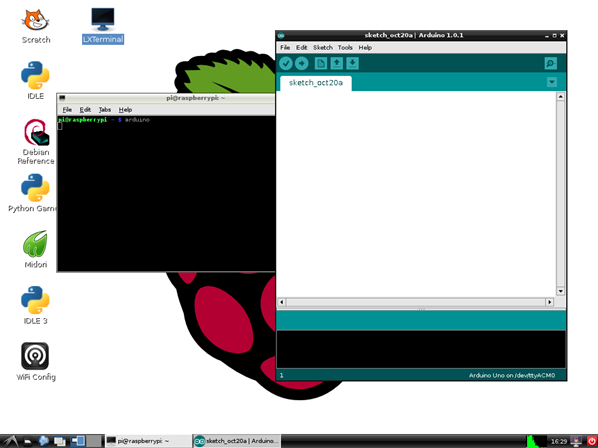 少し待っているとMacのデスクトップにRaspberry Piのarduino IDEが現れます。
