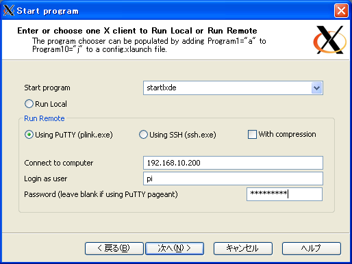 Connect computerの欄にはRaspberry Piに振られたIPアドレスを記述します。ご自分の環境に合せて書き換えてください。