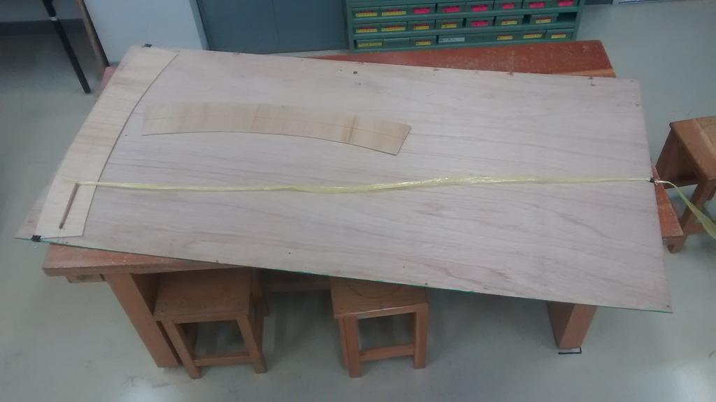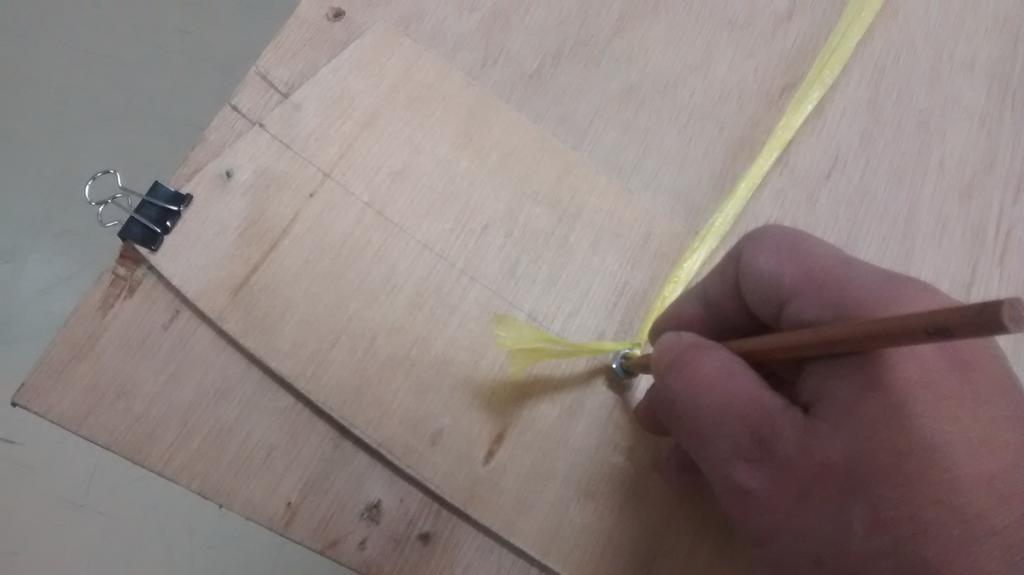 治具を使って部材中央に円弧を描く